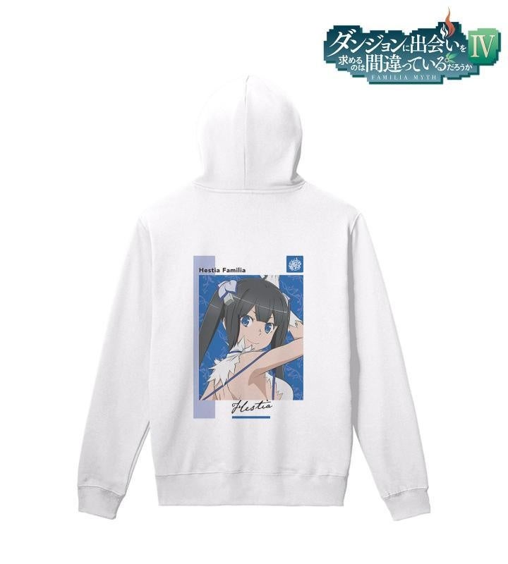 ヘスティア、アイズ・ヴァレンシュタイン、リュー・リオンとヘスティア・ファミリア、ロキ・ファミリア、アストレア・ファミリアのエンブレムなどをパーカーに仕上げました。
