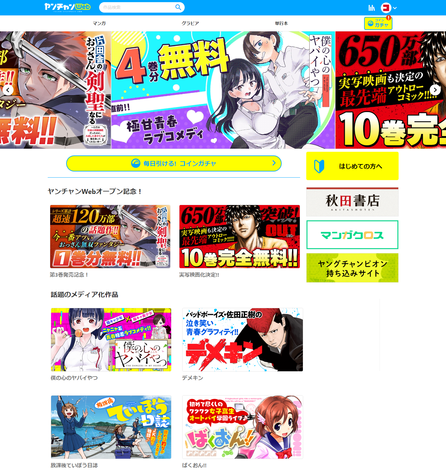 - ヤンチャンWeb 独自機能「コインガチャ」