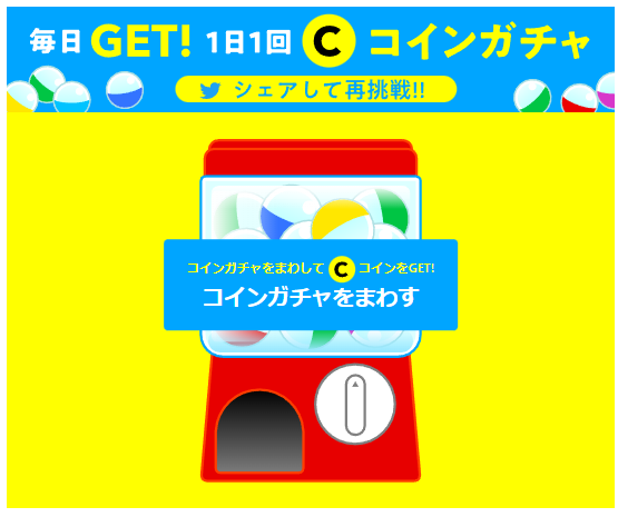 ガチャ画像をクリック/タップすると、1日1回コインが当たります。