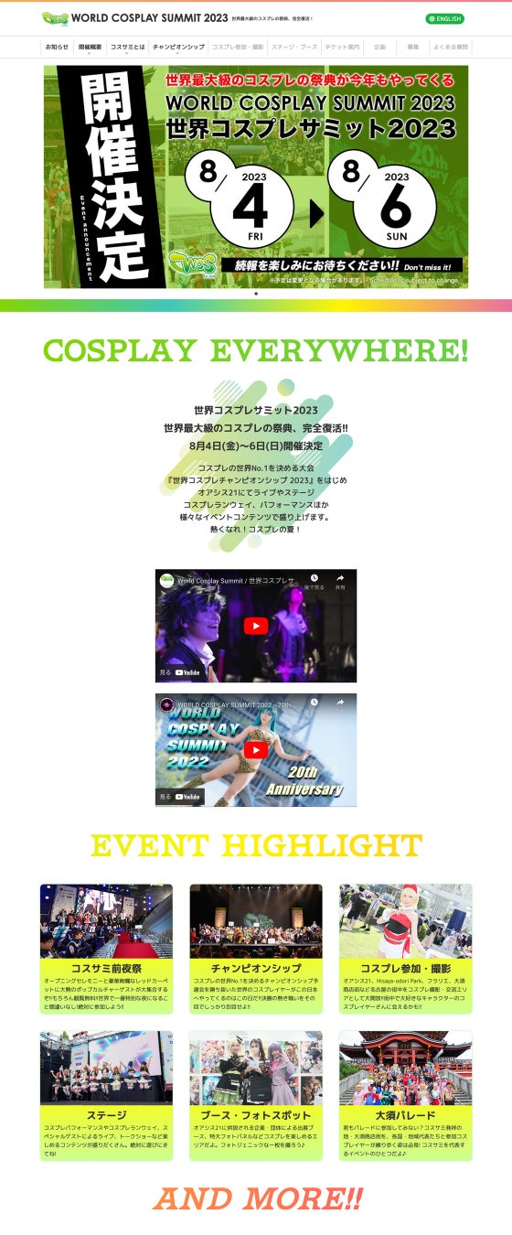 【公式サイト】https://www.worldcosplaysummit.jp/
