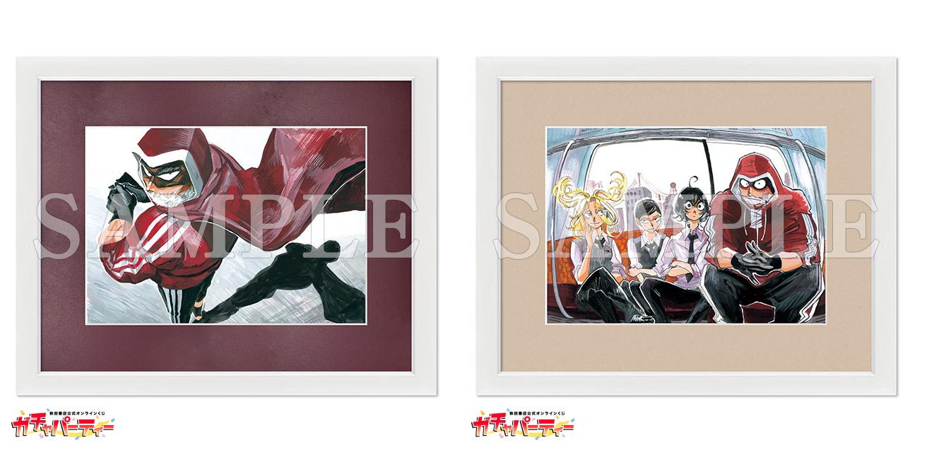 その他、くじを10枚購入するごとにランダムでクリアカードが当たる[10連購入特典]や、購入者の中から抽選で10名に板垣巴留先生直筆のサインが入った高精細複製原画が当たる[抽選購入特典]もあります!