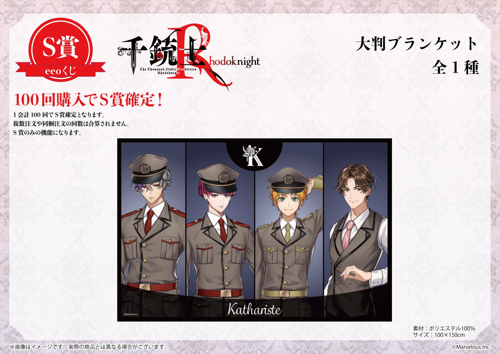 3月31日(金)から発売中の『千銃士:Rhodoknight』の「eeoくじ」では、S賞からD賞まで5つの景品が登場します。
