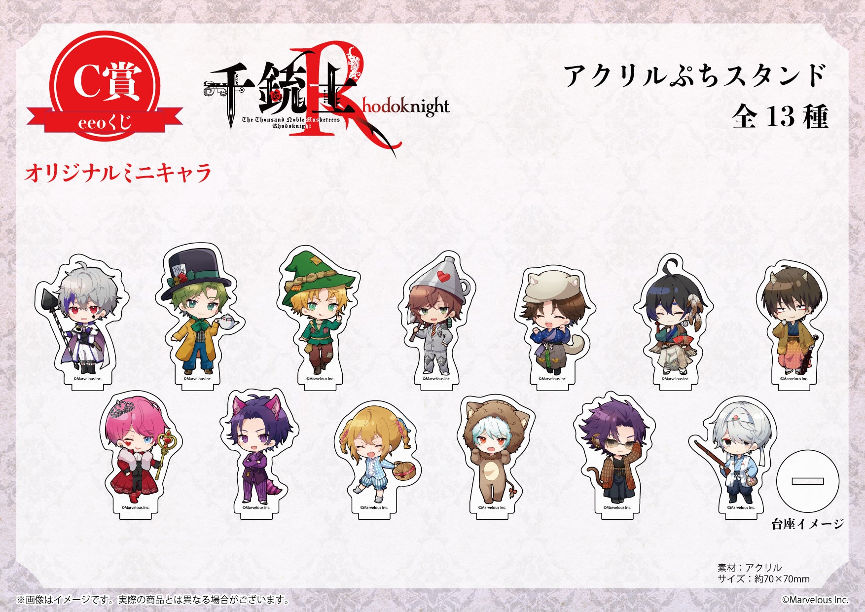 描き起こしオリジナルミニキャライラスト&カサリステグループ4人の士官学校制服イラストを使用した豪華な景品が満載の『千銃士:Rhodoknight』の「eeoくじ」童話テーマシリーズ第1弾。童話の登場人物になりきりつつも、気高い「貴銃士」らしさをも持ち合わせた姿はここでしか見ることができません。ぜひ「eeoくじ」で豪華景品をゲットして、『千銃士:Rhodoknight』をもっともっと応援しましょう!