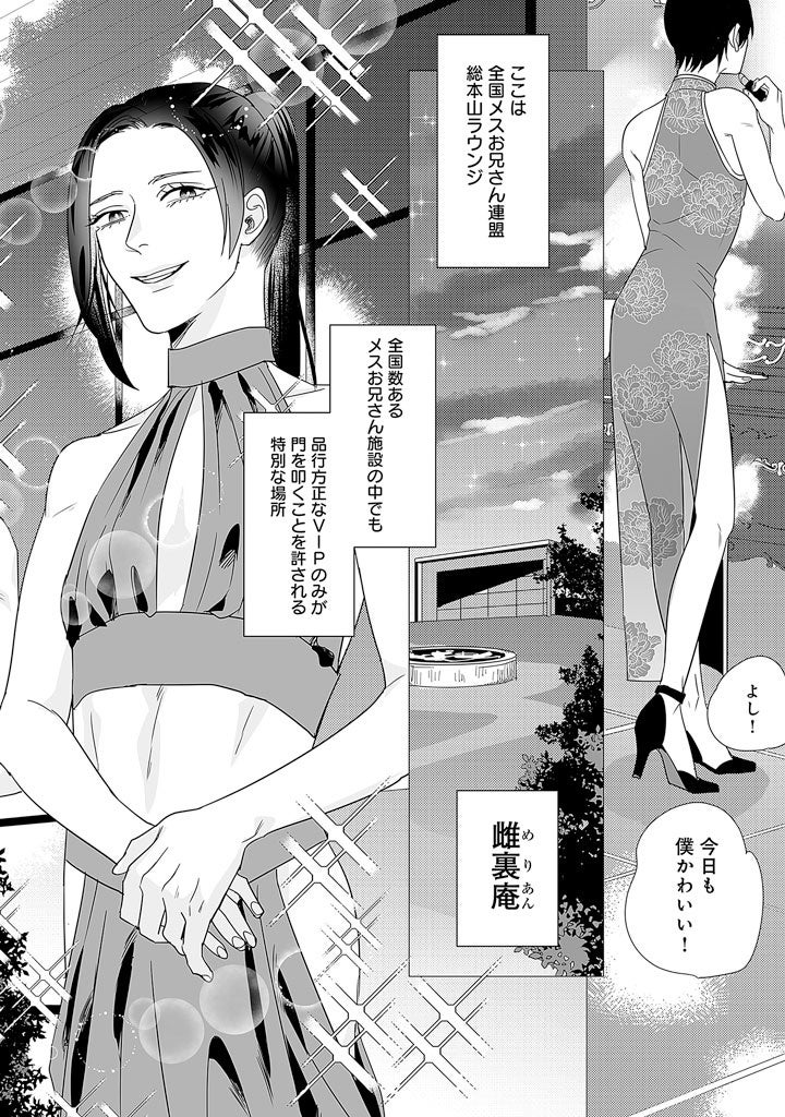 巨大市場となりつつある”メスお兄さん”業界の 総本山ラウンジ 雌裏庵(めりあん)に勤めるれおは、狂犬気質なツンデレメスお兄さん。