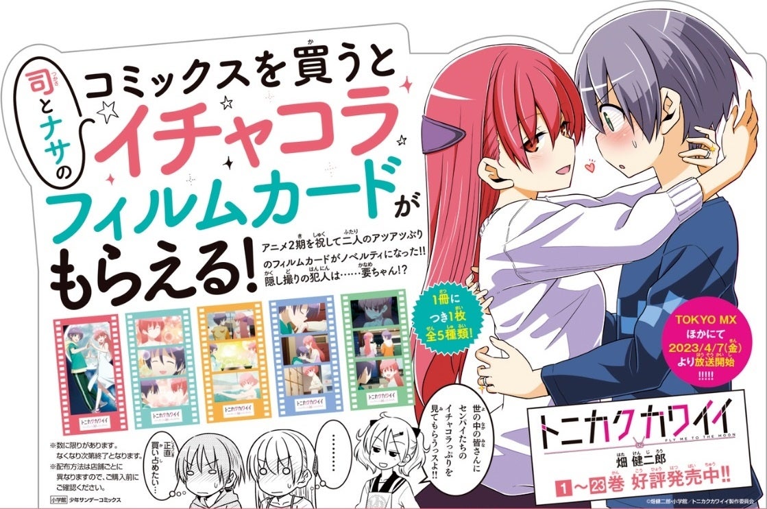「週刊少年サンデー」連載中の大人気新婚さんラブコメ『トニカクカワイイ』(畑 健二郎)。その、新婚さんのナサと司ちゃんによるイチャコラな日々を描くTVアニメ第2期が、いよいよ2023年4月7日(金)の深夜から放送スタート!(TOKYO MXテレビ、BS11)。