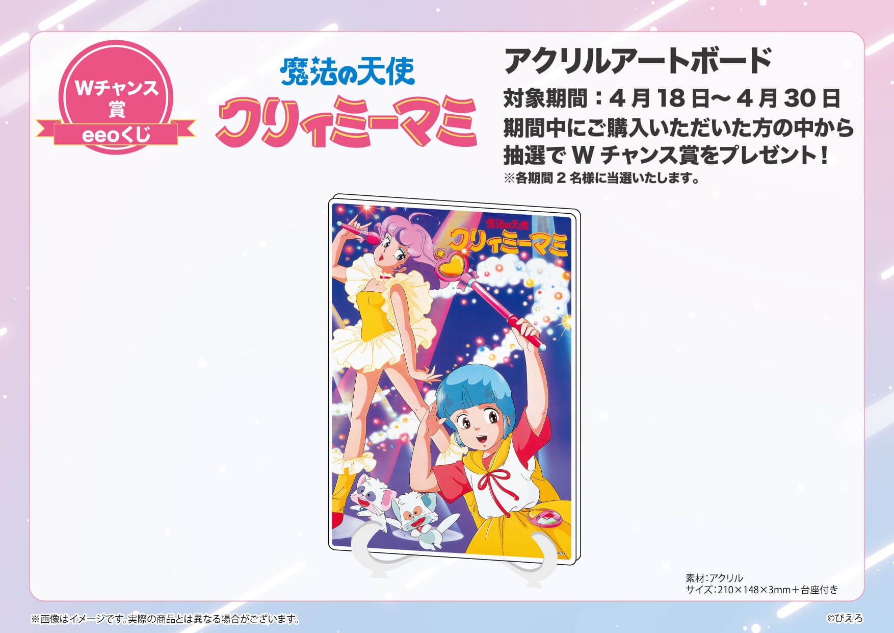 そんな『魔法の天使クリィミーマミ』の「eeoくじ」には、エモエモなグッズが景品としてたくさん登場! さらに豪華景品だけでなく購入限定の特典や、期間中に「eeoくじ」を買うと抽選で当たるWチャンス賞も……‼