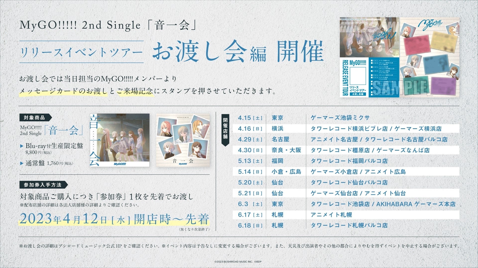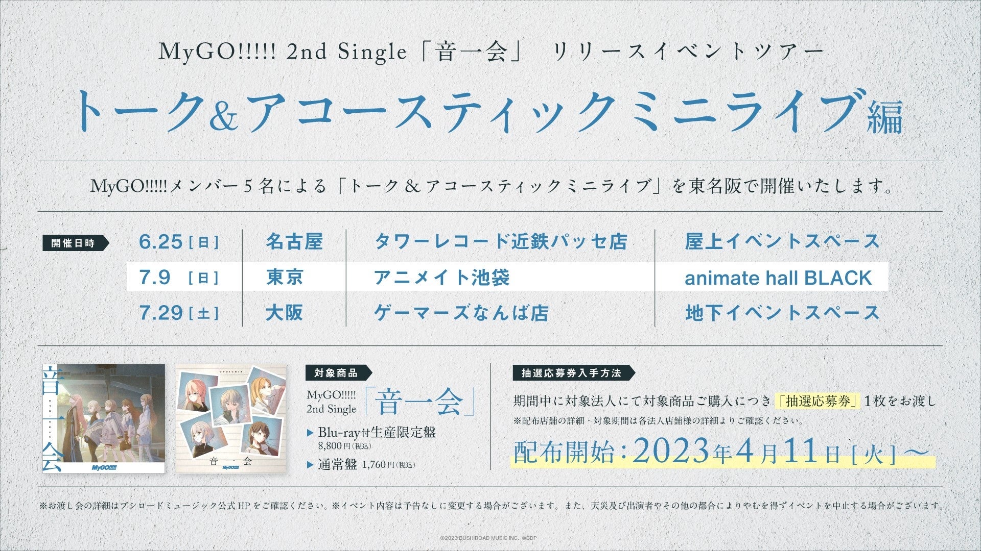MyGO!!!!! 2nd Single「音一会」の発売を記念して、リリースイベントツアーの開催も決定しています。