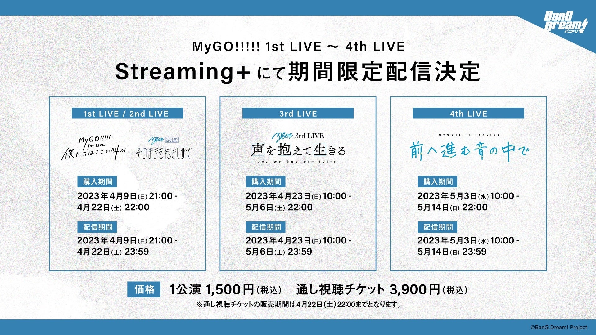 - MyGO!!!!! 1st LIVE~4th LIVEの期間限定有料配信が決定!