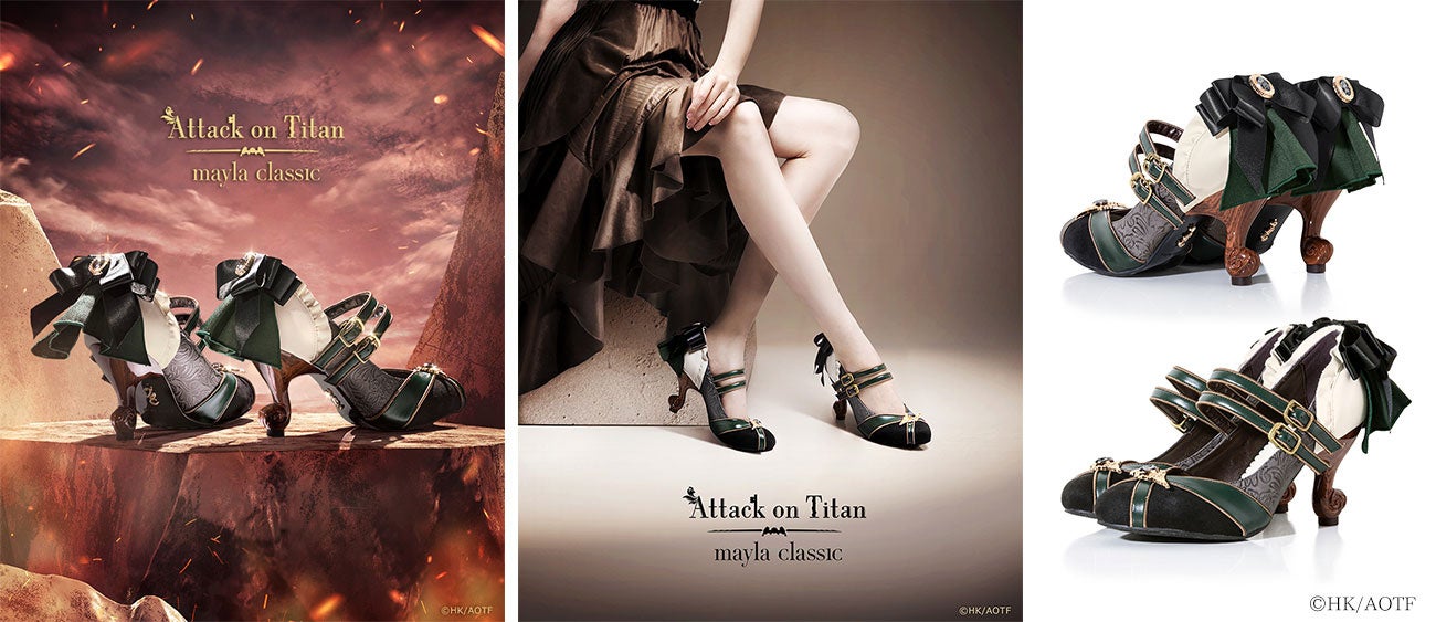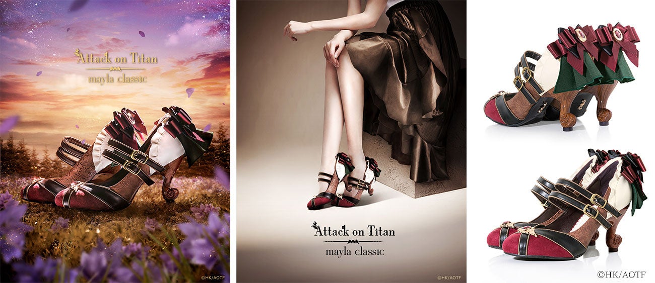 「体温が2℃ あがる・・・」のキャッチコピーでレディースファッションを展開するブランドMAYLAは、TVアニメ『進撃の巨人』 シューズの再販を2023年4月5日(水)18:00より開始いたしました。エレン、ミカサ、アルミン、リヴァイ、エルヴィン、ハンジの6人のキャラクターたちをイメージした、華やかでドレッシーなパンプスです。