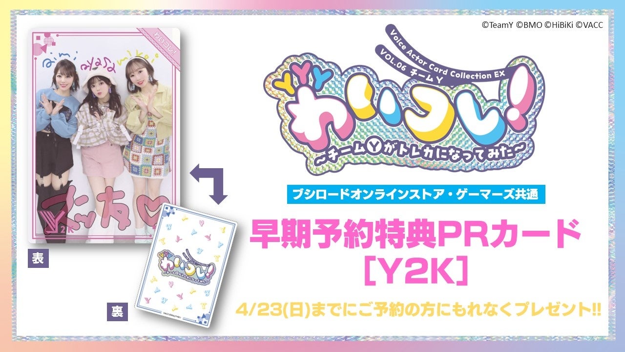 昨日4月10日(月)22:00よりチームYの生配信にて、「Voice Actor Card Collection EX VOL.06 チームY『わいコレ!~チームYがトレカになってみた~』」の発売が発表された。