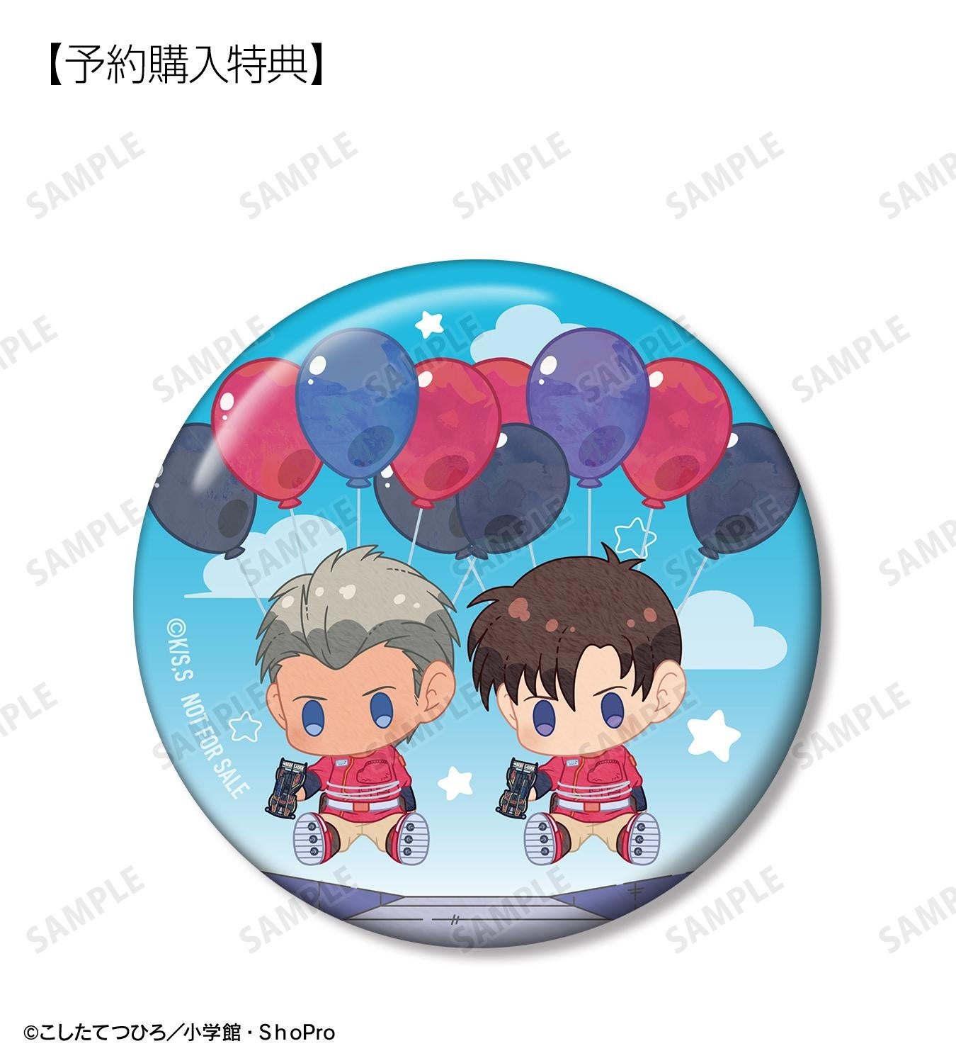星馬 烈、星馬 豪、鷹羽 リョウ、J、ブレット・アスティア、ミハエル・フリードリヒ・フォン・ヴァイツゼッカー、エーリッヒ・クレーメンス・ルーデンドルフ、シュミット・ファンデルハウゼン・フォン・シューマッハ、カルロ・セレーニをお空に風船でぷかぷかと浮いたぬいぐるみをイメージして描き起こし、缶バッジに仕上げました。