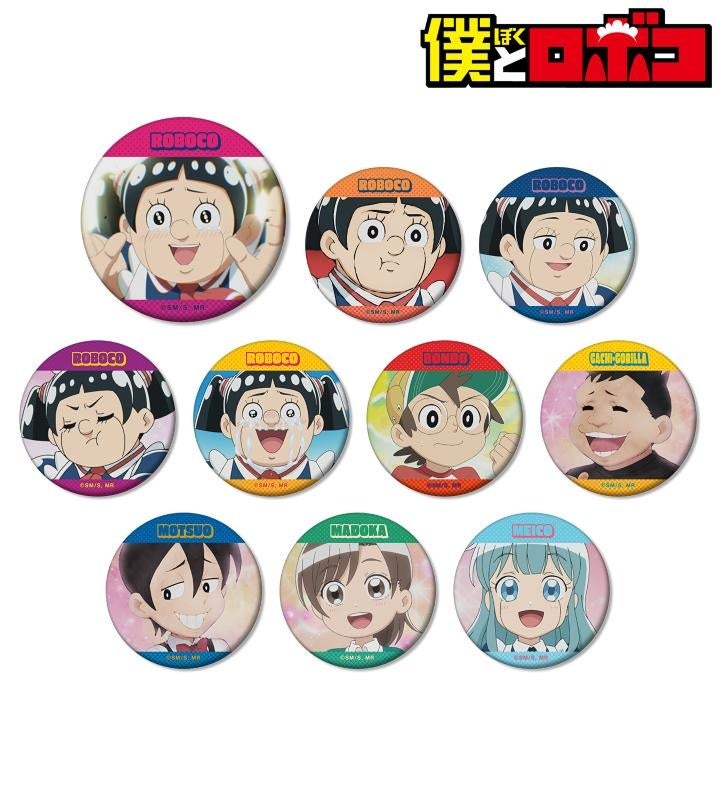 ロボコ、ボンド、ガチゴリラ、モツオ、円ちゅわ~ん、メイコの印象的なシーンをマットな手触りの缶バッジに仕上げました。