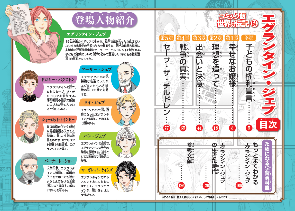 まんがで読む伝記「コミック版世界の伝記」シリーズ最新刊は、子ども支援活動を行う民間・非営利の国際組織NGO(非政府組織)「セーブ・ザ・チルドレン」を創設し、子どもの権利に関する世界初の公式文書を起草した女性、エグランタイン・ジェブを描きます。