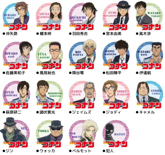 選べるキャラクターのイラストは全47種類。主人公の江戸川コナン、工藤新一をはじめ、灰原哀、怪盗キッド、赤井秀一、安室透などの第一弾(24種類・17キャラクター)から、小嶋元太、円谷光彦、吉田歩美、鈴木園子、降谷零、沖矢昴、羽田秀吉、犯人などが登場した第二弾(13種類・12キャラクター)に加えて、今回はSNSよりリクエストをいただいた、妃英理、大岡紅葉、メアリー、伊達航、萩原研二、諸伏景光、ジェイムズ、ジョディ、キャメル、ウォッカの10キャラクターが第三弾として登場しました。