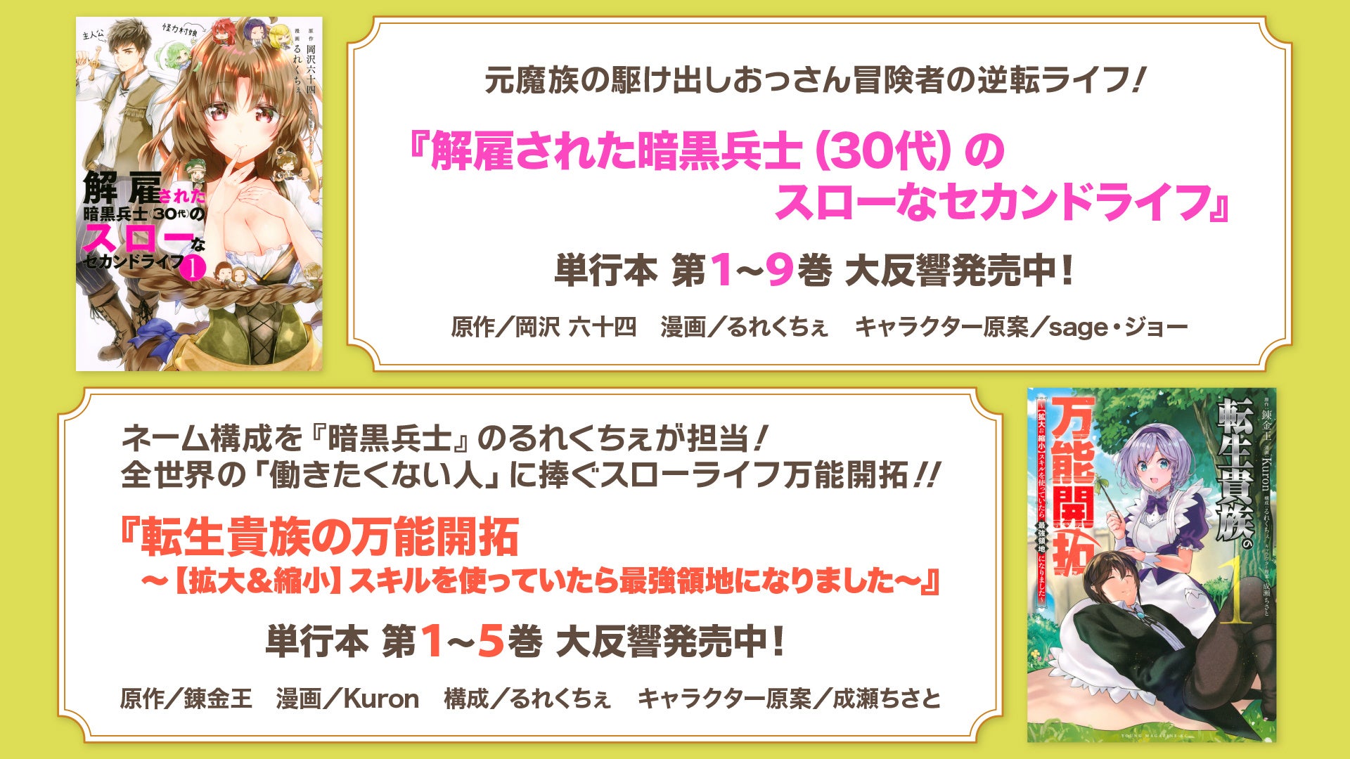 原作コミックス「解雇された暗黒兵士(30代)のスローなセカンドライフ」第1~9巻大好評発売中です。こちらもお見逃しなく!