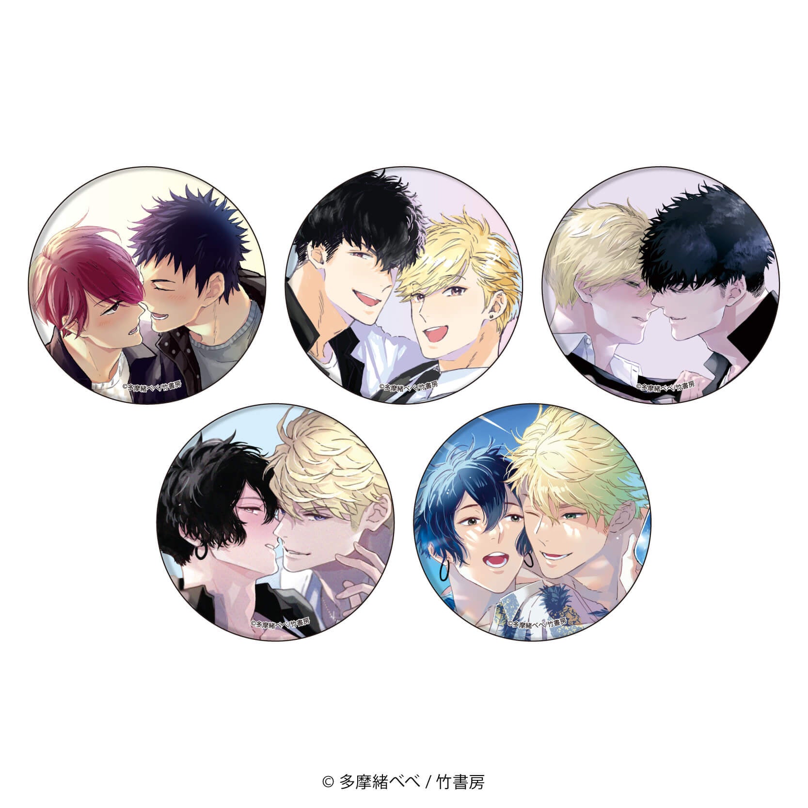 直径65mmの大きめ缶バッジには、3作品のカップルが登場です。ついつい見とれてしまう官能的な表情・キュンとする笑顔など、推しカプたちの魅惑的なお顔にクローズアップ♪