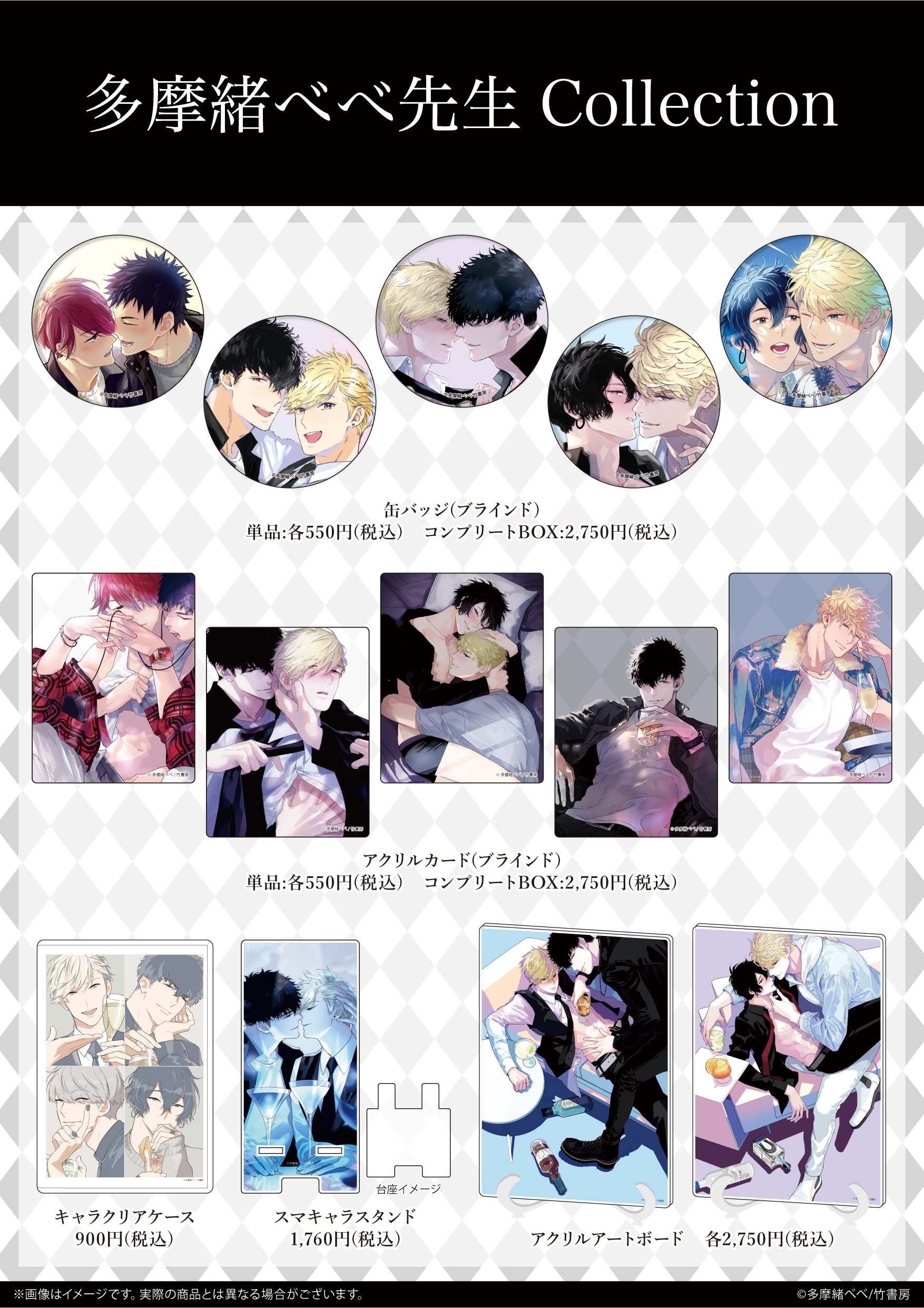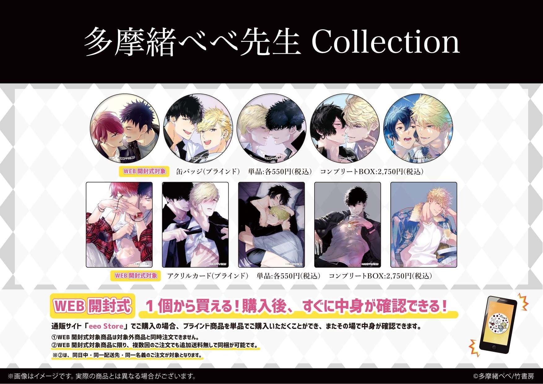 「多摩緒べべ先生 Collection」と題し、多摩緒べべ先生が手がける大人気BL漫画の新作グッズが登場! 4月22日よりeeo Store(通販)とGraffArt Shop(店舗)にて発売されます。