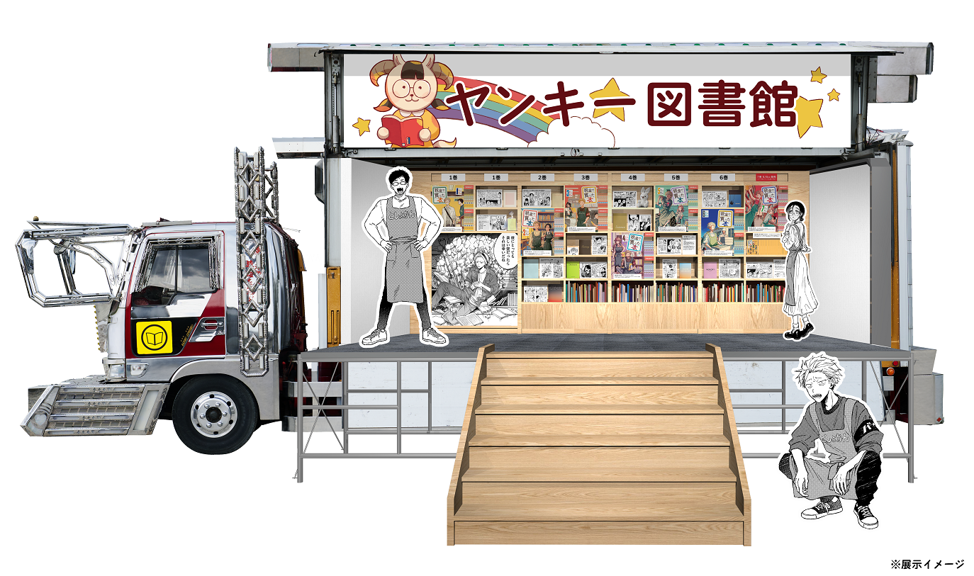 講談社「ヤングマガジン」連載中の人気漫画『税金で買った本』第7巻発売(発売日2023年5月8日)を記念して、ド派手にデコレーションされたトラックの移動式図書館「ヤンキー図書館」が2023年5月6日(土)~7日(日)の2日間にかけて、「渋谷キャストガーデン」に出現します!