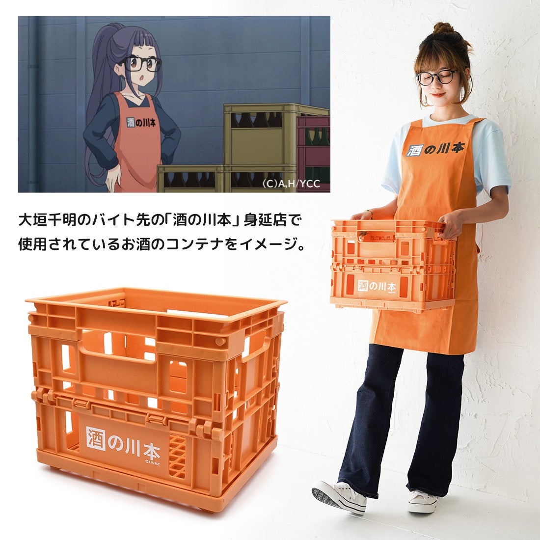 大垣千明のバイト先の「酒の川本」 身延店で使用されているお酒のコンテナをイメージした折りたたみコンテナ!