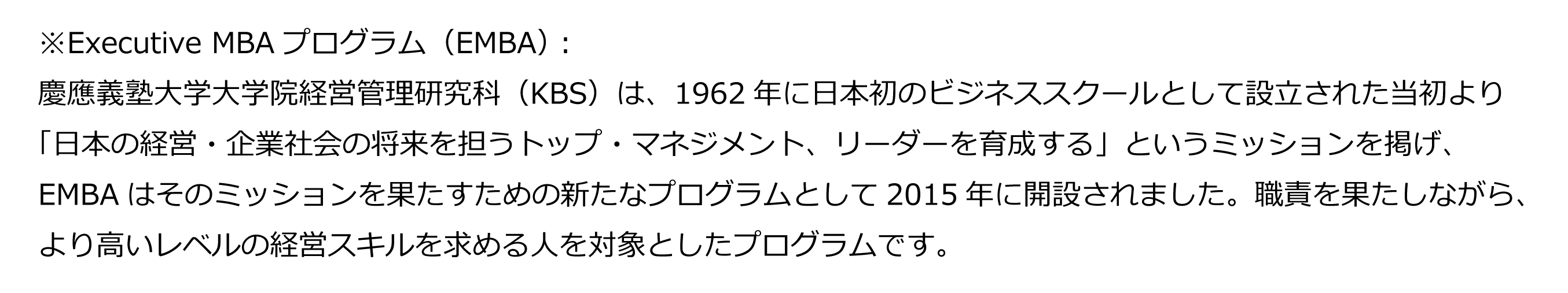 公式サイト:https://www.kbs.keio.ac.jp/graduate/emba/index.html