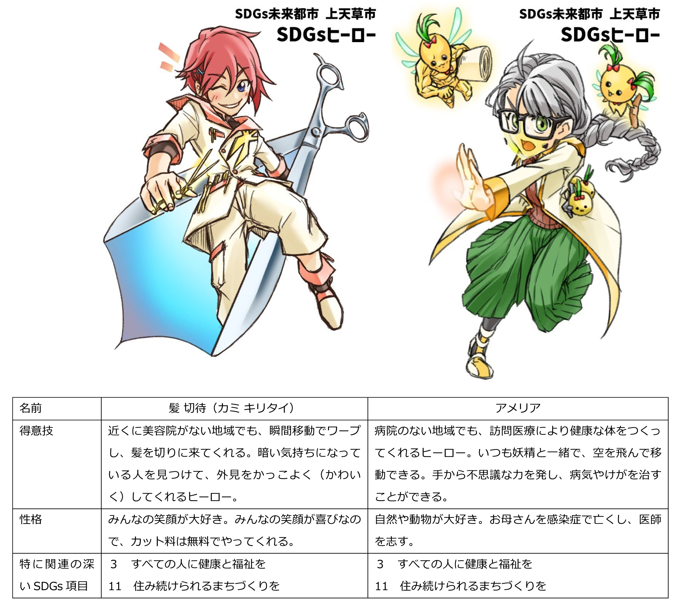 上天草高校におけるSDGs特別講座で生まれたSDGsヒーローは、次の2人のヒーローです。