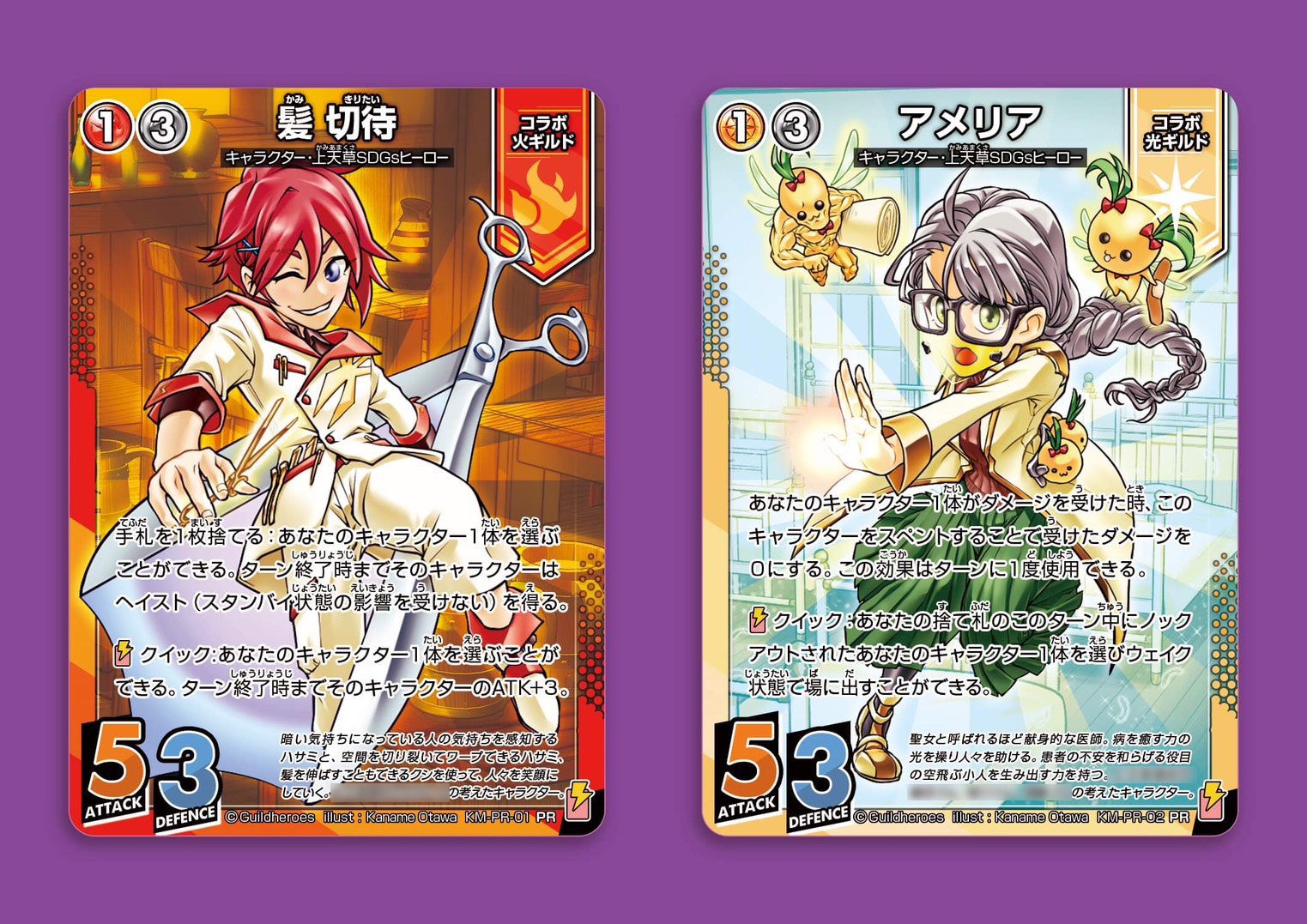 今回の特別講座で高校生が考えてくれた2人のSDGsヒーローは、特別講座終了後にギルドヒーローズ社の方で清書し、本物のトレカのキャラクターに採用しました。「職業×ファンタジー」がテーマの新作トレカ「ギルドヒーローズ」の希少なレアカードとして、今後あなたも手にすることになるかもしれません。