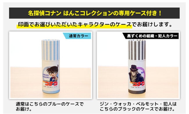 いずれも「名探偵コナン」の39名のキャラクターがデザインとして選べる専用ケース付きとなります(通常はブルーのケース、黒ずくめの組織に属するジン・ウォッカ・ベルモット、そして犯人はブラックのケースとなります)。