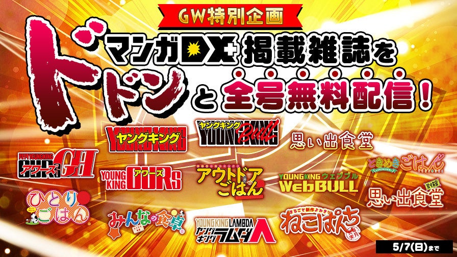 キャンペーン期間中『マンガDX+』では、掲載中の15雑誌全号を対象に、最新号からバックナンバー(過去6か月分)まで無料でお読みいただけるキャンペーンを開催いたします。