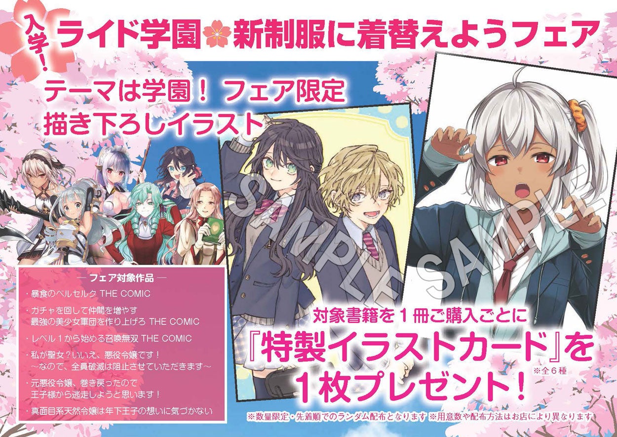 ・対象コミックスを1冊ご購入ごとに学園がテーマの「描き下ろしイラストカード」がその場でもらえる!