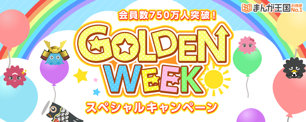 このたび、『まんが王国』は2023年4月に会員数750万人を突破いたしました。日頃のご愛顧に感謝し、多くの方々がもっとお得に、より多くの魅力的な作品と出会えることを願って、ゴールデンウィークにお楽しみいただける特別なキャンペーンをご用意いたしました。期間中、無料試し読みの増量や、お得なクーポンのプレゼントなどキャンペーンが盛りだくさん!