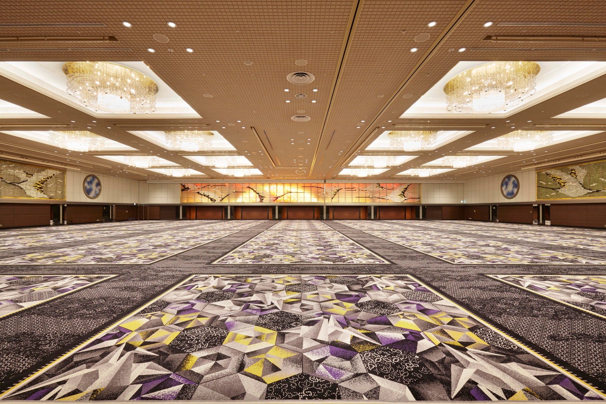 会場は、国際都市を代表する、第一級のグランドバンケットルーム「鶴の間」。鶴の舞をイメージした創作シャンデリアが、トークショーに華やかさを添えます。