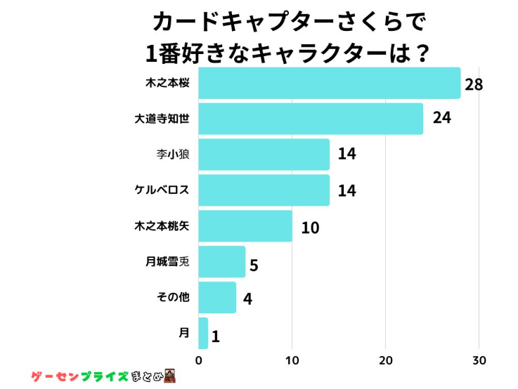 100人にアンケートを行ったところ、「木之本桜」と回答したのは全体の28.0%でした。また回答した理由として、見た目がかわいい・THE主人公・いつも一生懸命といった意見が数多く見受けられました。