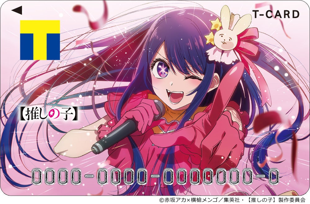 今回の「Tカード(【推しの子】)」の券面デザインは、TVアニメ「【推しの子】」に登場するアイドルグループ、B小町の絶対的エース、アイのキービジュアルを使用したデザインです。