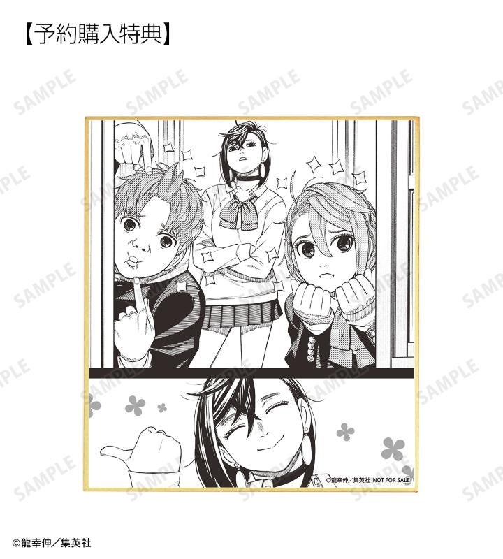 綾瀬 桃、オカルン、オカルン(変身)、白鳥 愛羅、白鳥 愛羅(変身)、ターボババア、円城寺 仁、円城寺 仁(変身)、坂田 金太、バモラのコマイラストをミニ色紙に仕上げました。