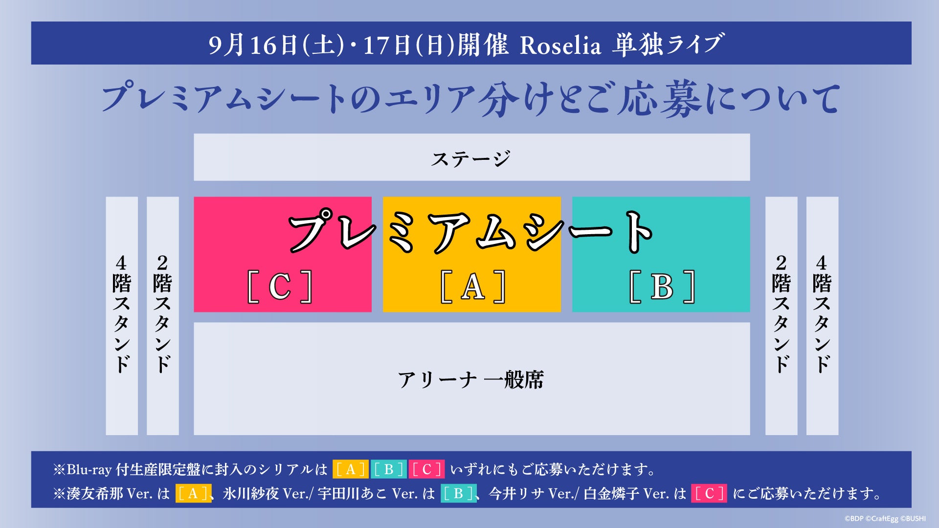 Roselia 13th Single「THRONE OF ROSE」ご購入の形態によって、応募可能なプレミアムシートのエリアが異なりますのでご注意ください。