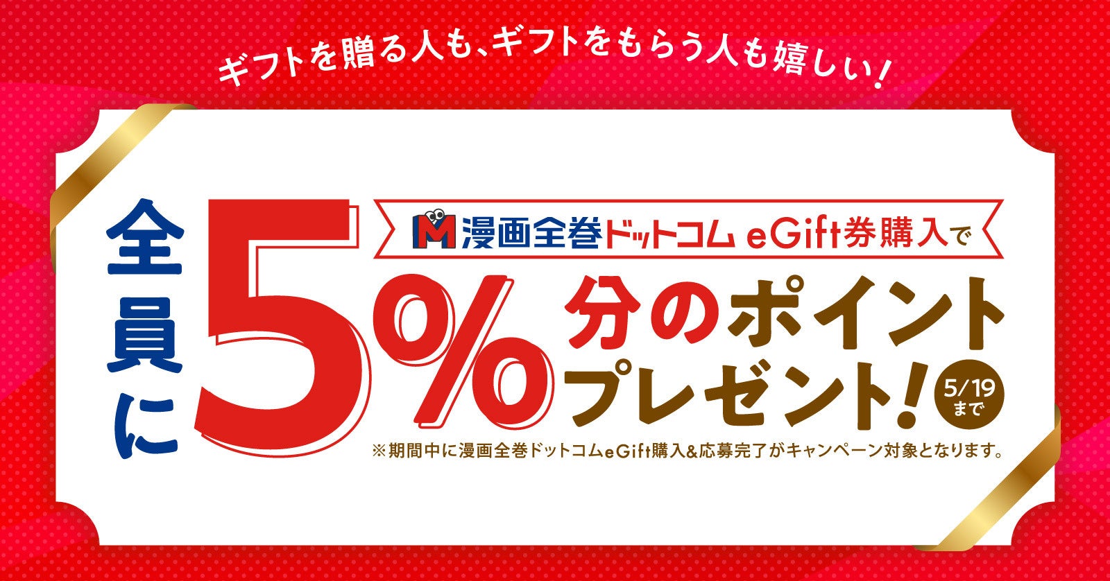 漫画全巻ドットコム eGiftサービスでeGift券をご購入し、応募フォームから応募された方全員にeGift券の5%分のポイントをプレゼント!