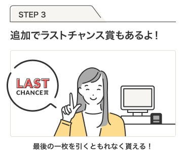 ・最後の一枚のくじを引くと、もれなくラストチャンス賞の賞品がもらえる