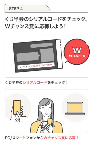 STEP4:くじ半券のシリアルコードをチェックし、Wチャンス賞に応募