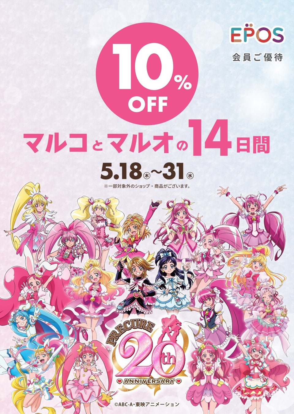 5月18日(木)~5月31日(水)の期間中、マルイ・モディ店舗にて「プリキュアエポスカード」に新規ご入会いただいた方に、「マルイオリジナル プリキュアキーホルダー」をプレゼントいたします!