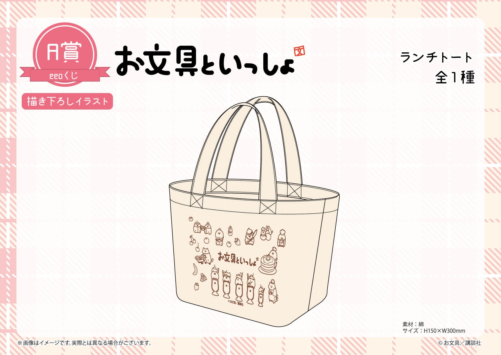 A賞には、縦15×横30cmのランチトートがラインナップ。生地やイラストはぬくもりのあるシンプルな色合いで、場所を問わず使いやすいのが嬉しいポイントです。