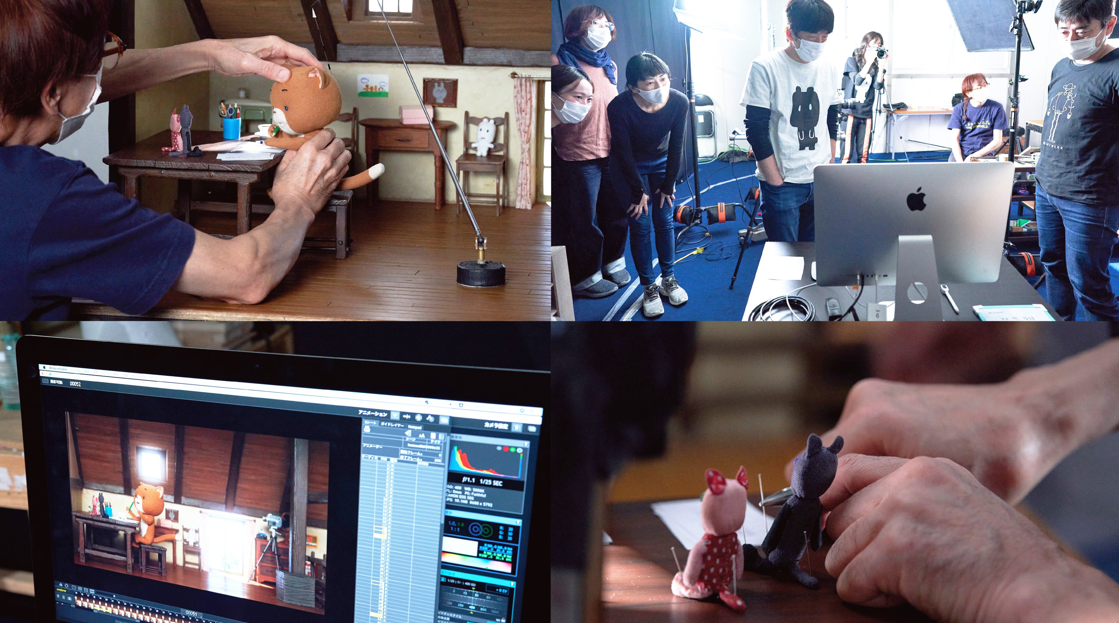 コマ撮りアニメーションは、人形をすこしずつ、すこしずつ動かし、写真24カットでようやく1秒が完成するという緻密で、膨大な作業の積み重ねから生まれます。本展では、その撮影を「ほぼ日曜日」の会場で行います。壁に空いているちいさな穴から、そっと、撮影現場を覗いてみてくださいね。