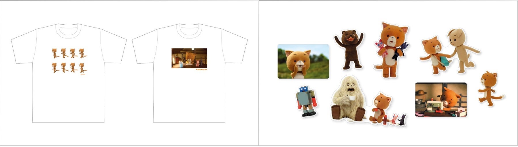 オリジナルのTシャツのデザインは、かろやかに走るこまちゃんと、真剣なまなざしで絵コンテを描くこまちゃんの2種類です。かわいいシーンがいっぱい詰まったフレークシールは、すこし大きめのサイズ感です。どちらも、会場とほぼ日曜日のオンラインストア(https://www.1101.com/store/r/hobonichiyobi?filter=stock%3A1 )で販売します。
