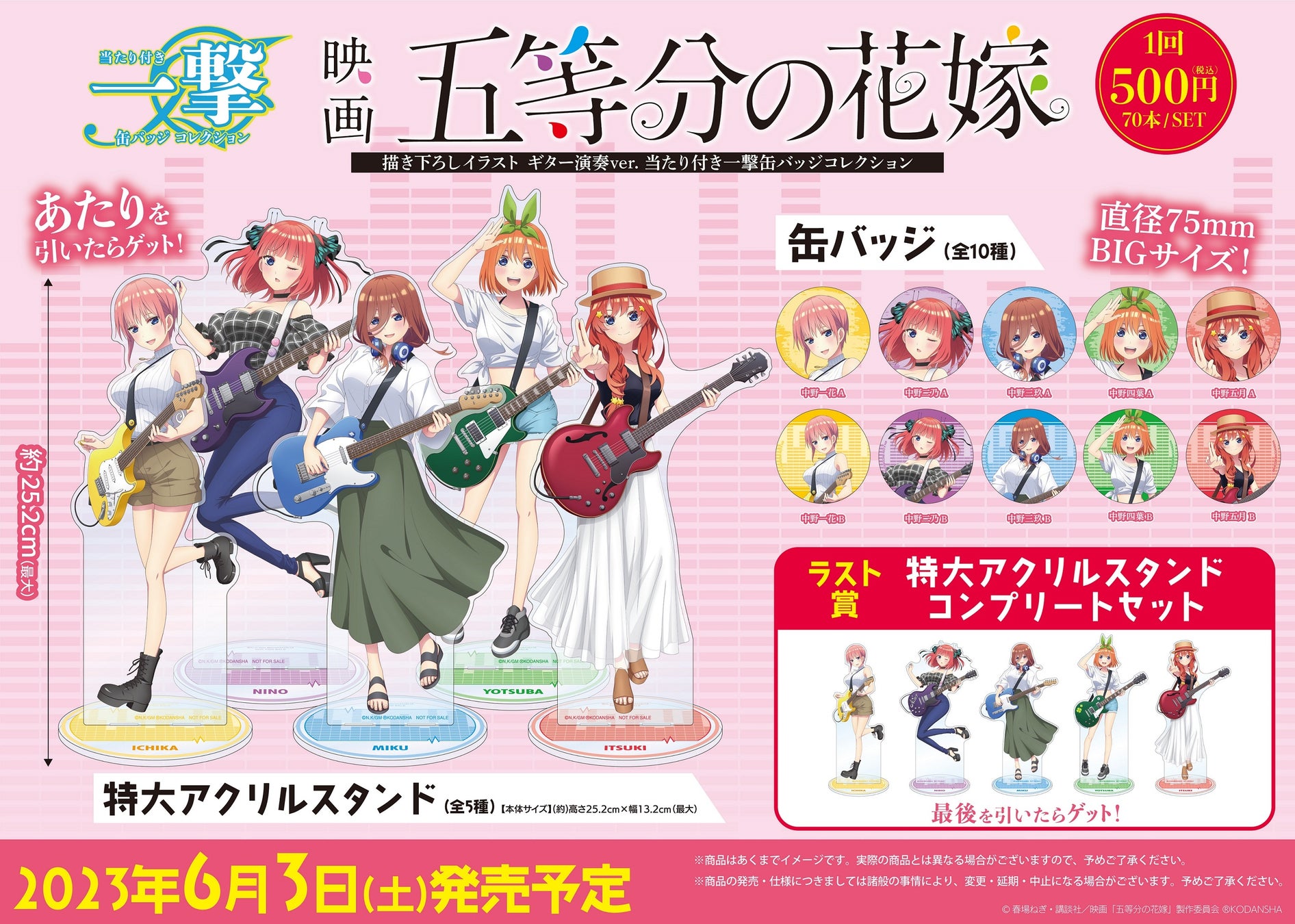 漫画・アニメのオリジナルグッズを販売する株式会社アルマビアンカ(本社:東京都中野区、代表取締役:坂井智成)は、この度、「映画『五等分の花嫁』」の当たり付き一撃缶バッジコレクションを発売いたします。