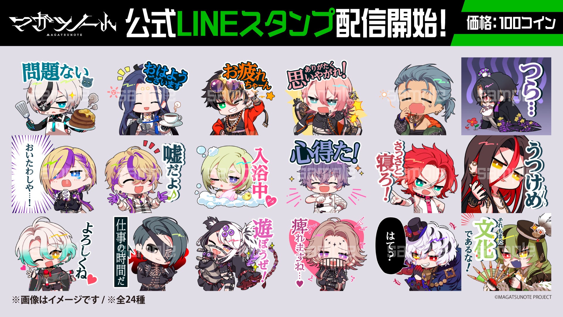 5月20日(土)より、『マガツノート』初となるオリジナルLINEスタンプの販売を開始いたします。陣営6種と、新規描き下ろしイラストの武将18人、全24種のLINEスタンプで「有害人類」の会話をお楽しみください。