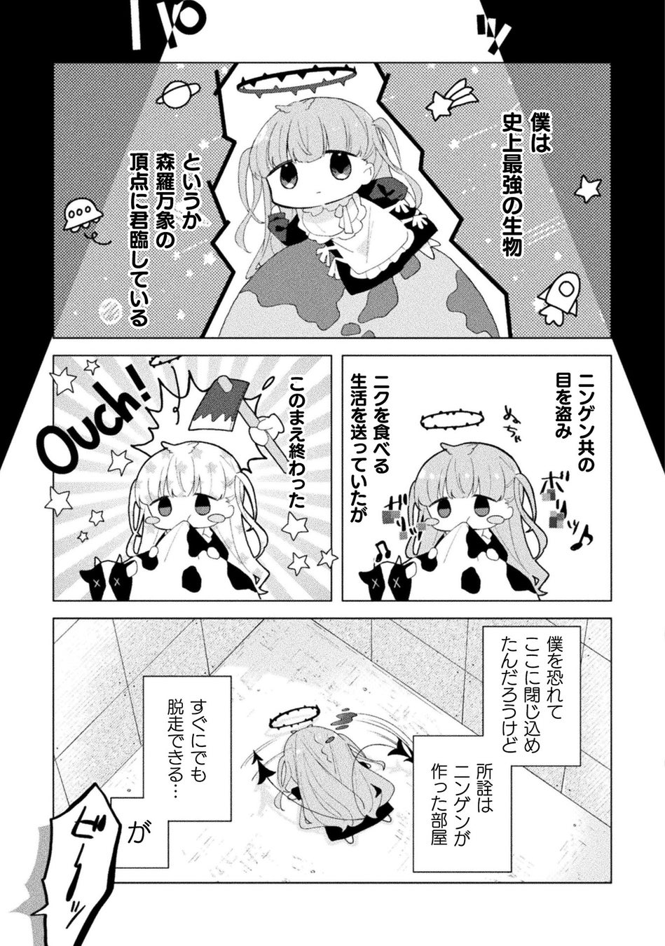 食欲旺盛な謎の生物こぺ子の隔離部屋に入れられ、共に過ごすこととなったエフ。
