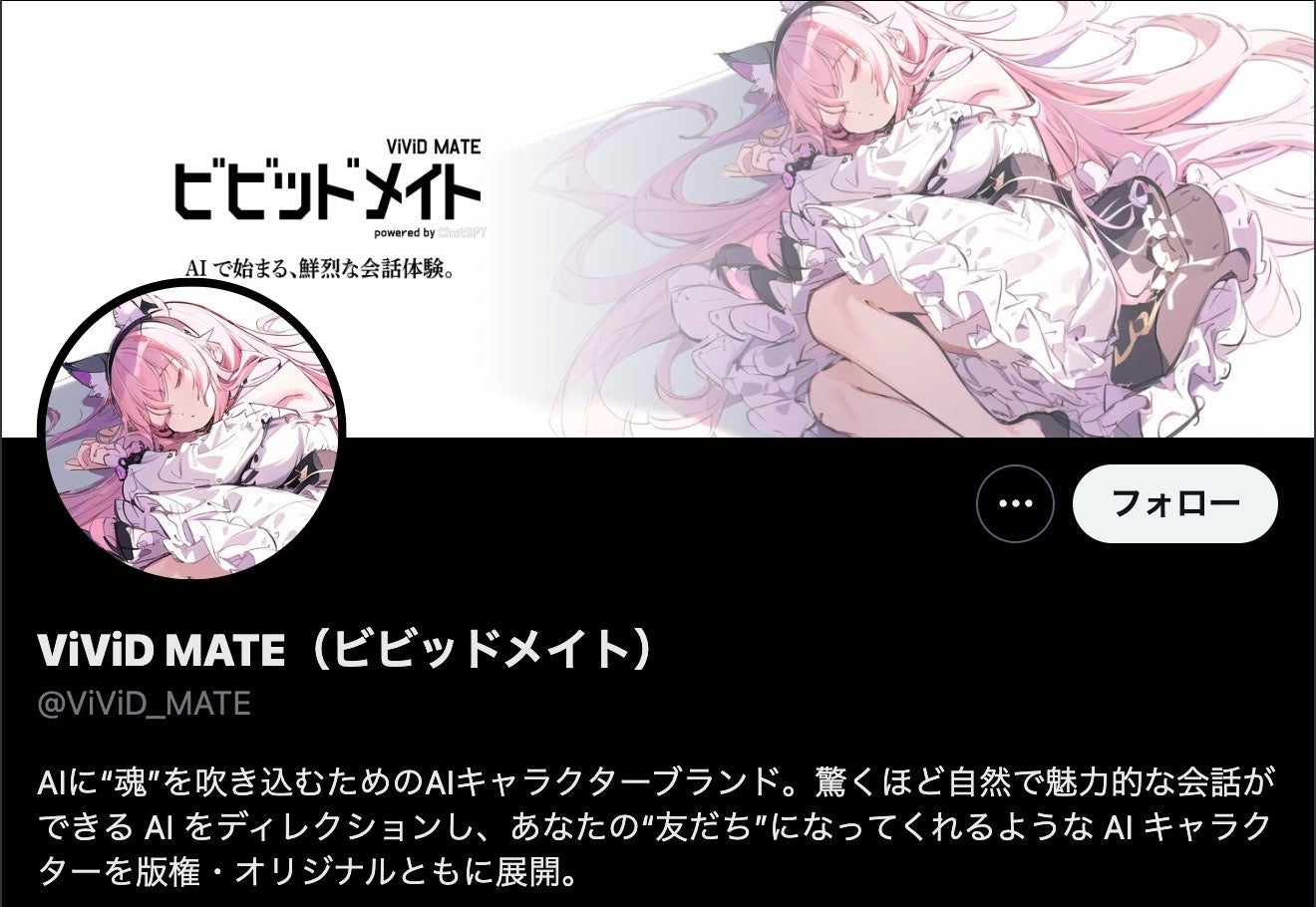 『ViViD MATE(ビビッドメイト)』は、AIに“魂”を吹き込むためのAIキャラクターブランドです。LLM(大規模言語モデル)やDiffusion Model(拡散モデル)等の最新のAI技術を活用した、驚くほど自然で魅力的な会話ができるAIをディレクションし、あなたの“友だち”になってくれるようなオリジナルAIキャラクターを展開していきます。