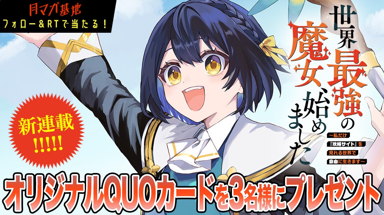 『ラスボス、やめてみた』等で人気の坂木持丸による小説『世界最強の魔女、始めました ~私だけ『攻略サイト』を見れる世界で自由に生きます~』のコミカライズが、本日より月マガ基地にて連載開始となりました! 漫画は『雨の日も神様と相撲を』(原作:城平京)の戸賀環が担当。