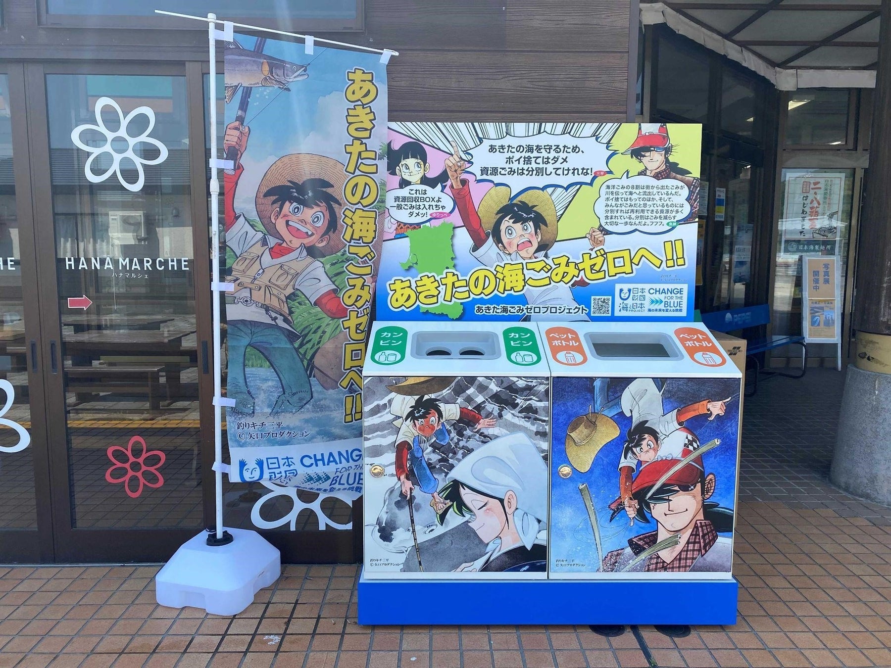 あきた海ごみゼロプロジェクト実行委員会は、6月8日(木)に横手市、秋田ふるさと村へ、訪れた方々に分別意識醸成を図ることを目的とし、缶・ビン・ペットボトルを回収する「釣りキチ三平資源回収BOX」を寄贈いたします。ふるさと村には、昨年あきた海ごみゼロを啓発する「釣りキチ三平巨大顔出しパネル」が設置されフォトスポットとして活用されており、今年はさらに「釣りキチ三平資源回収BOX」も増設し、三平=ごみ抑制・海を守るイメージの意識付けを図ります。資源回収BOXの設置は、今回のふるさと村を含め、これで県内4カ所(道の駅五城目・にしめ・象潟ねむの丘)の設置となります。回収BOX寄贈セレモニー後は、釣りキチ三平の愛くるしい着ぐるみ三平くんが率いる「釣りキチ三平ごみ拾い隊」と、地元の方々と一緒に、秋田ふるさと村周辺のおよそ2㎞の周辺道路の清掃活動を行います。