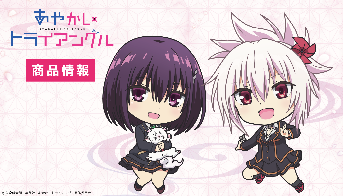 【きゃらON!TVアニメ「あやかしトライアングル」商品ページ】https://www.charaon.jp/SHOP/130419/215339/list.html