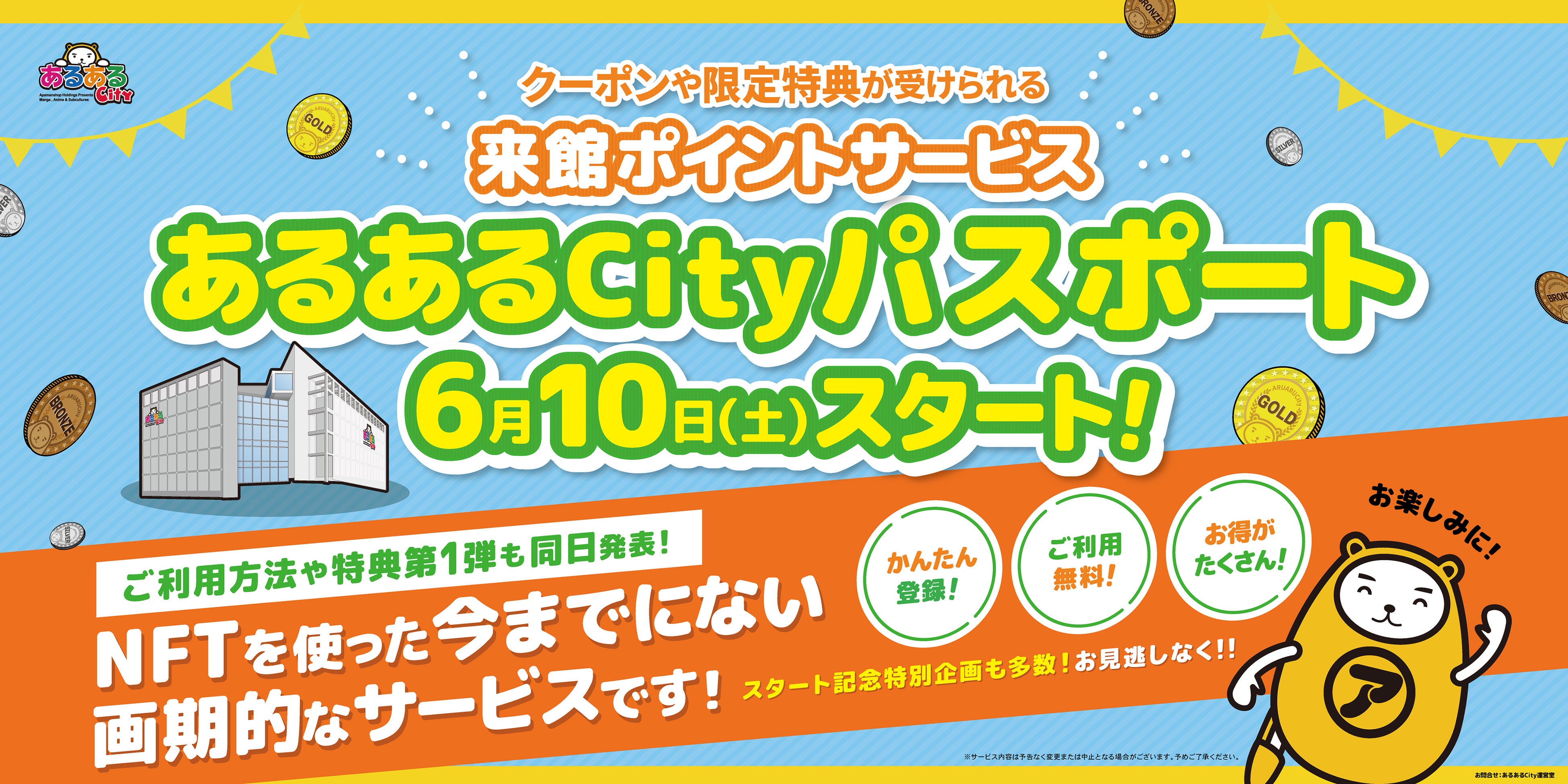 尚、「あるあるCityパスポート」の入手・利用方法・特典などの詳細は、6月10日(土)11:00に、あるあるCityの公式ホームページ上にて発表いたします。